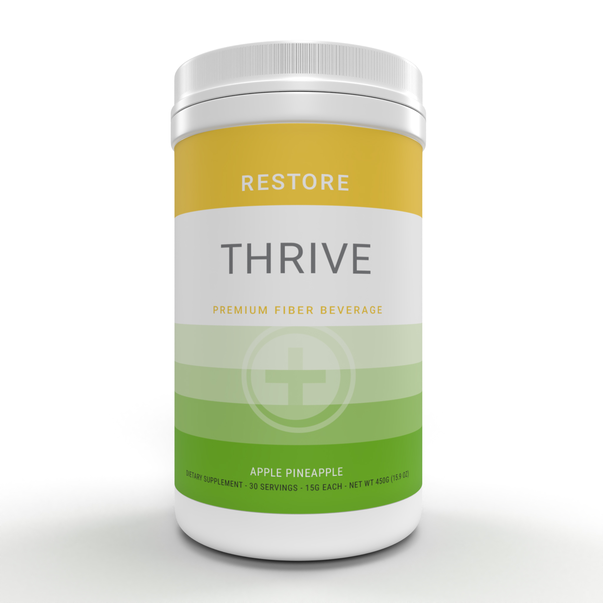 Our bodies require an appropriate amount of fiber daily to maintain regularity in our digestive systems, remove digestive waste, and maintain better overall digestive well-being. THRIVE Restore contains additions of husks, barks and fruits which makes this powder fiber formula the ideal formula for your health & wellness.
